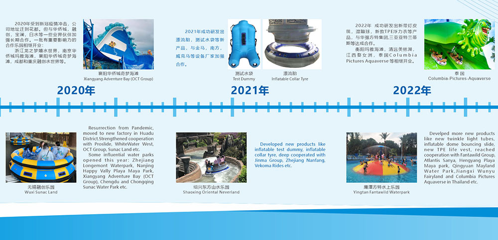 Base on intensive communication with water park slide companies and abundant running experience on water parks, our R&D team collected sufficient cases and data to optimize material, as well as each process and technology of production. Day by day, year after year efforts make our products to achieve longer lifespan, to be safer and more comfortable to water park players. Many products like "Safety Slide Tube", "Tube with Backrest" and new ergonomic handle water slide mat have been patented. And all the products have been certificated by CE.