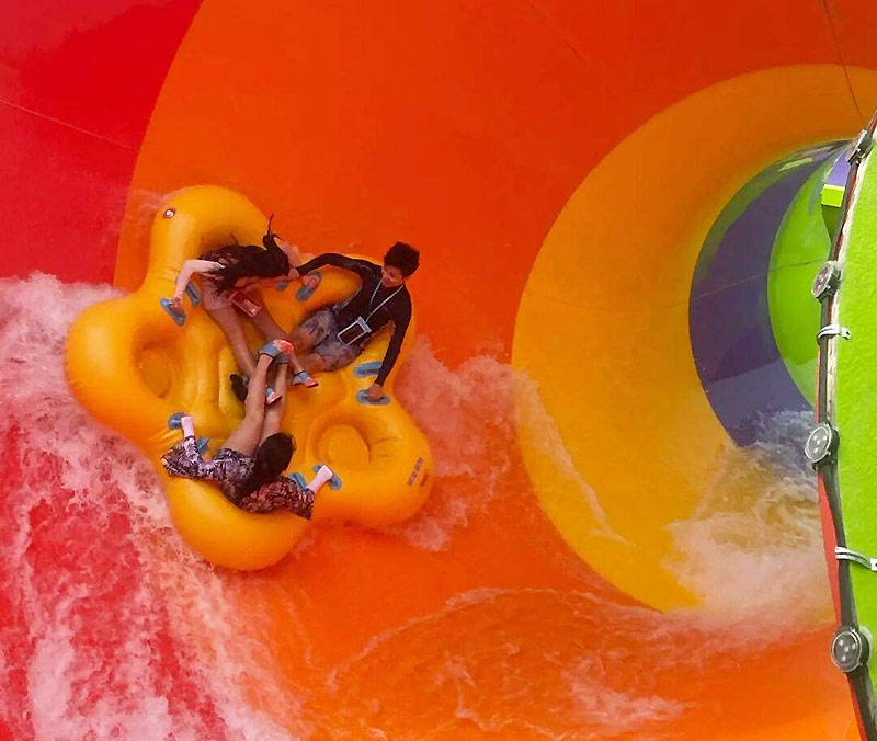 For example, in the incredible Funnel web in Jamberoo Action Park, you’ll drop at 30 km/h deep into the spider’s funnel, you will see the world's biggest spider sculpture just at the side of tornado slide, you will get unique experience. The cloverleaf tube raft with seat pad from Guangdong H-Fun ensure your safety on the slide, but it can only take 4 players each time, so you need to wait if there are many palyers.